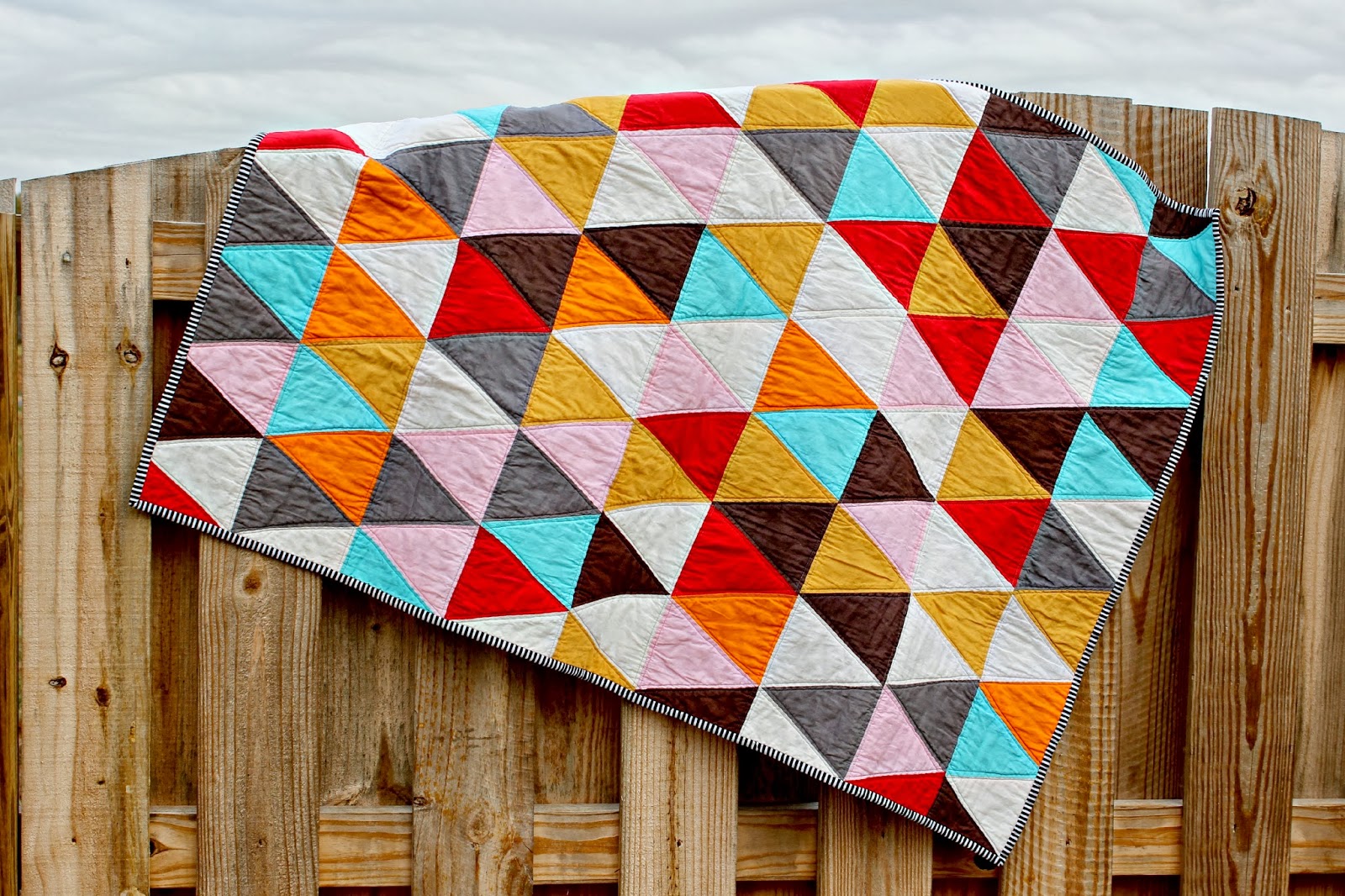 I made this quilt a few months back and it quickly became one of my favorite quilts. My friend found this quilt on pinterest and asked me to make one for her sweet daughter. I loved making this quilt. The colors, the striped binding, the quilting, everything. What is not to love about this beauty?!
